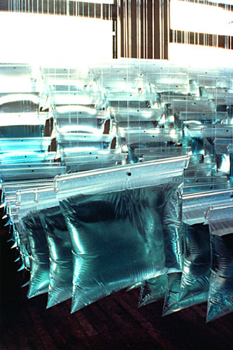 Wave (detail) Tap water, blue dye, plastic bags, & mixed materials. 7ft x 5ft x 7ft