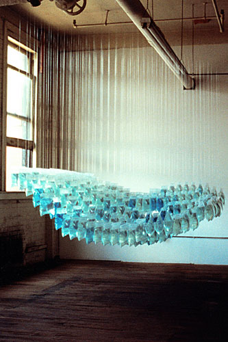 Wave Tap water, blue dye, plastic bags, & mixed materials. 7ft x 5ft x 7ft